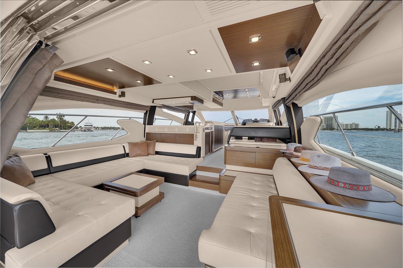 Fully loaded 2014 Azimut 64 Flybridge featuring twin CAT C18 engines, dual Seakeepers, yacht controller, joystick, crew quarters, hydraulic swim platform, and full teak package. Luxury performance and Italian design make this yacht a top-tier cruising or charter-ready vessel.