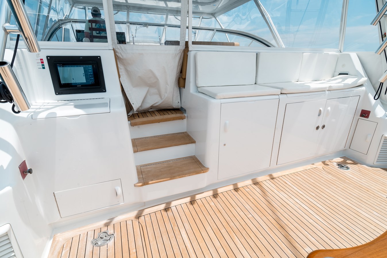 Built for the most avid fisherman, she also has a great layout for the whole family and is ideal for extended fishing and cruising throughout the islands. There are two staterooms but multiple convertible berths that can sleep up to 8.