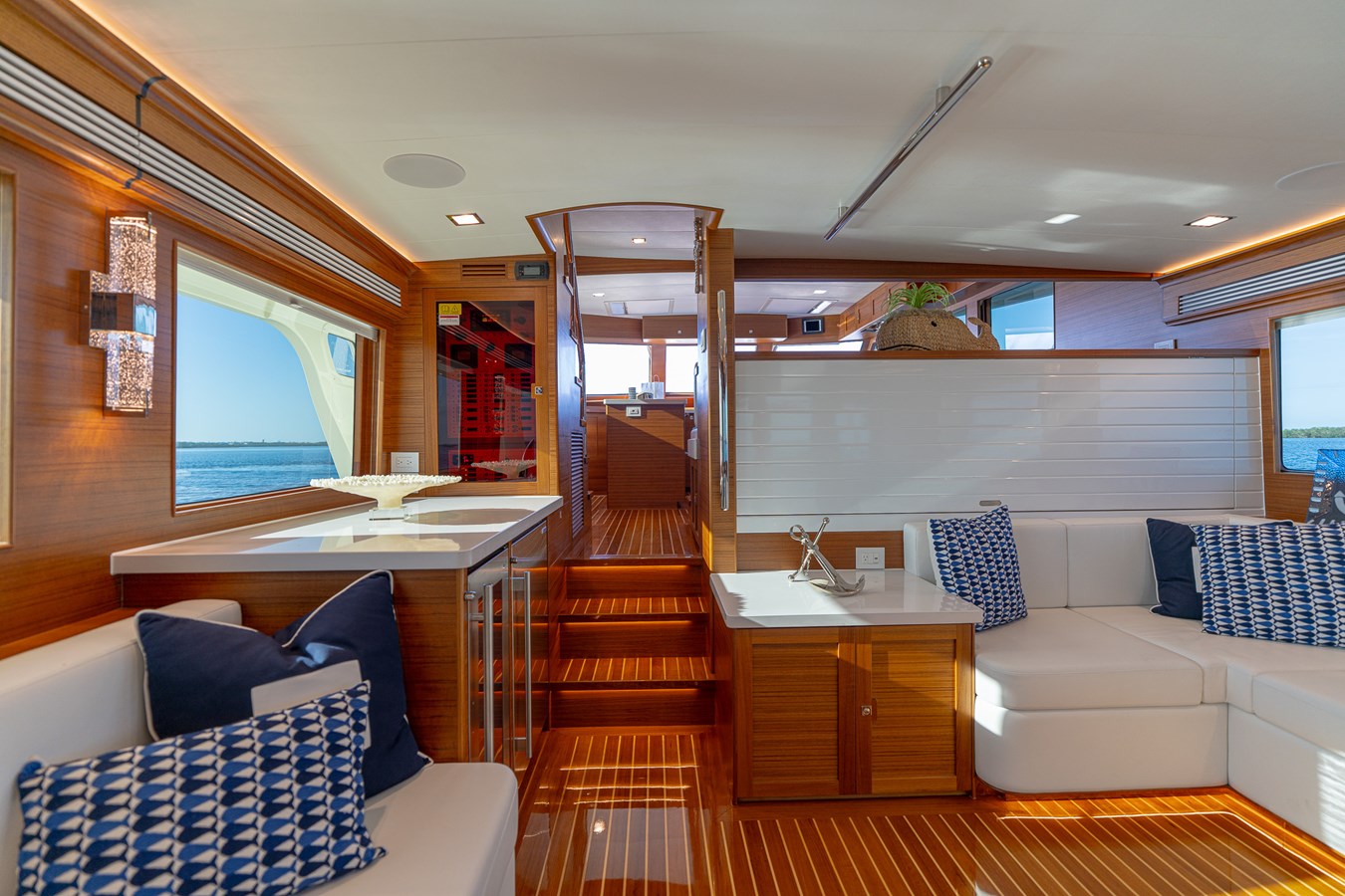 2024 Marlow Explorer 58E-CB “Maritime” is a perfect mix of the traditional Marlow Explorer trawler feel and contemporary interior design. She is elegant, comfortable, and extremely well-appointed. Powered by twin Volvo D13 1000HP engines with a fuel capacity of 1500USG, she has the flexibility of going on long-range cruises at 8 knots or getting you to the next destination in a hurry at 20+ knots. “Maritime” was built with a davit and a freedom lift, giving you flexibility on where to carry your tender depending on what kind of trip you are setting out for. A robust Garmin electronics package makes running this vessel a pleasure for any owner or captain. She was built with features such as twin generators, Naiad stabilizers, a command bridge with a day head, a custom 3 stateroom layout, and a custom galley forward, just to name a few.