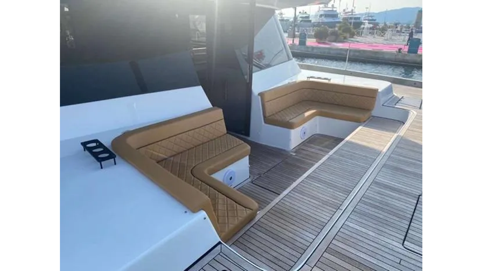 Elegance is ensured by the bulwark trim with exclusive teak wood. Thanks to this, the catamaran has a timeless character, and the new connector concept and the elongated line of the superstructure give it a unique level of comfort.