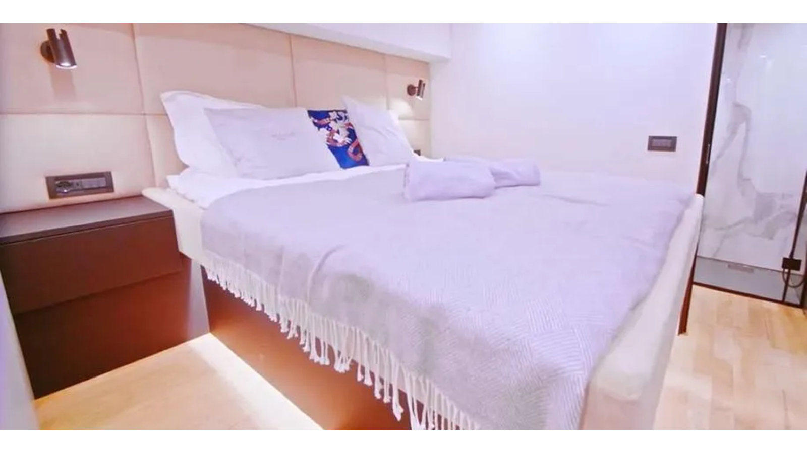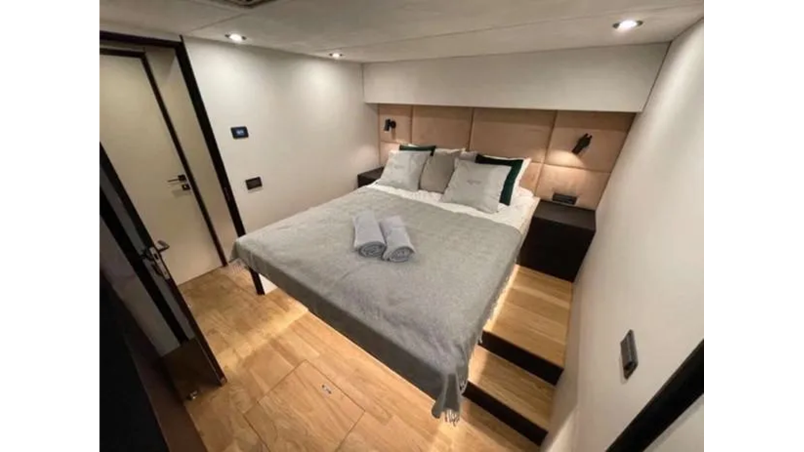 Elegance is ensured by the bulwark trim with exclusive teak wood. Thanks to this, the catamaran has a timeless character, and the new connector concept and the elongated line of the superstructure give it a unique level of comfort. This moon 60 is available in July 2023 and is layout for charter with 8 cabins and fully loaded.