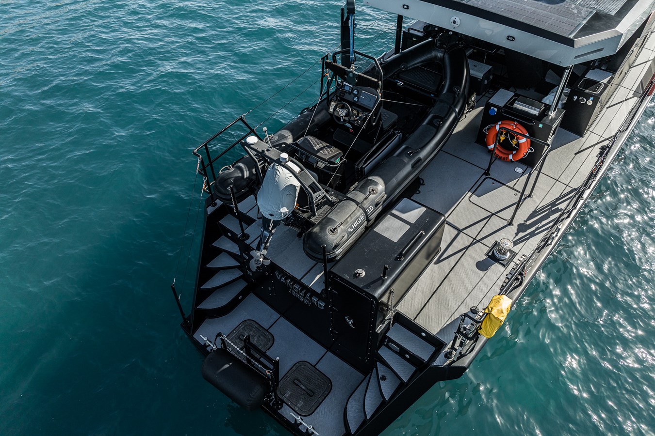 Vanguard accommodates up to six guests across three spacious cabins, with the main salon designed for easy conversion to sleep an additional two guests if required. Her light, airy interior, finished with pale timber and rich dark accents, gives an understated elegance that complements her rugged exterior. On the main deck, an open-plan layout connects the bridge, salon, and galley, creating a relaxed and social space. Below deck, a master suite, VIP cabin, and twin cabin—all with en-suite facilities—provide comfort and privacy.
