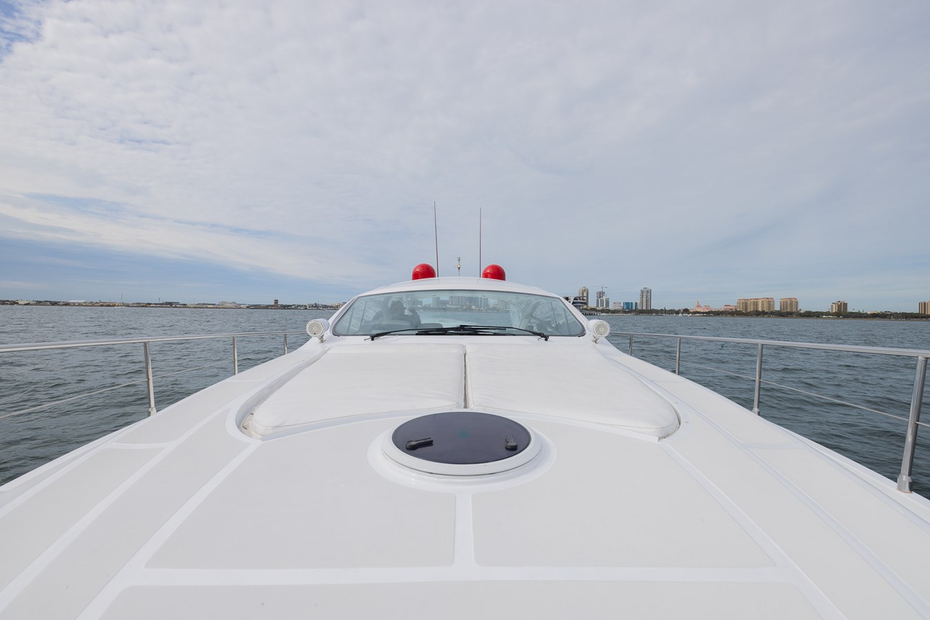This Pershing 56 has received all the love and attention from her seller to make her like new, turn key, and ready for any requests you make of her. She had a fresh Ferrari Corso Red Alexseal paint job in December of 2023. Her Common Rail MAN engines are at the top of their maintenance cycle with 1380 original hours. This 56’ Pershing has a neat and tidy engine room with upgraded Garmin electronics and a massive JL audio equipment upgrade. The generous 2-cabin layout makes for a great cruising machine. Below deck, a large galley and generous salon separate the full beam midship master from the VIP cabin forward. Each cabin has its own ensuite with separate shower. There is an additional day head off of the galley. Crew quarter access is aft below the sun pad. There is a new inflatable RIB concealed in the transom tender garage. A thirty foot high rooster tail and a top speed of 55 knots add to the exhilarating feeling you get from this Pershing 56 that you won’t find aboard most express cruisers.