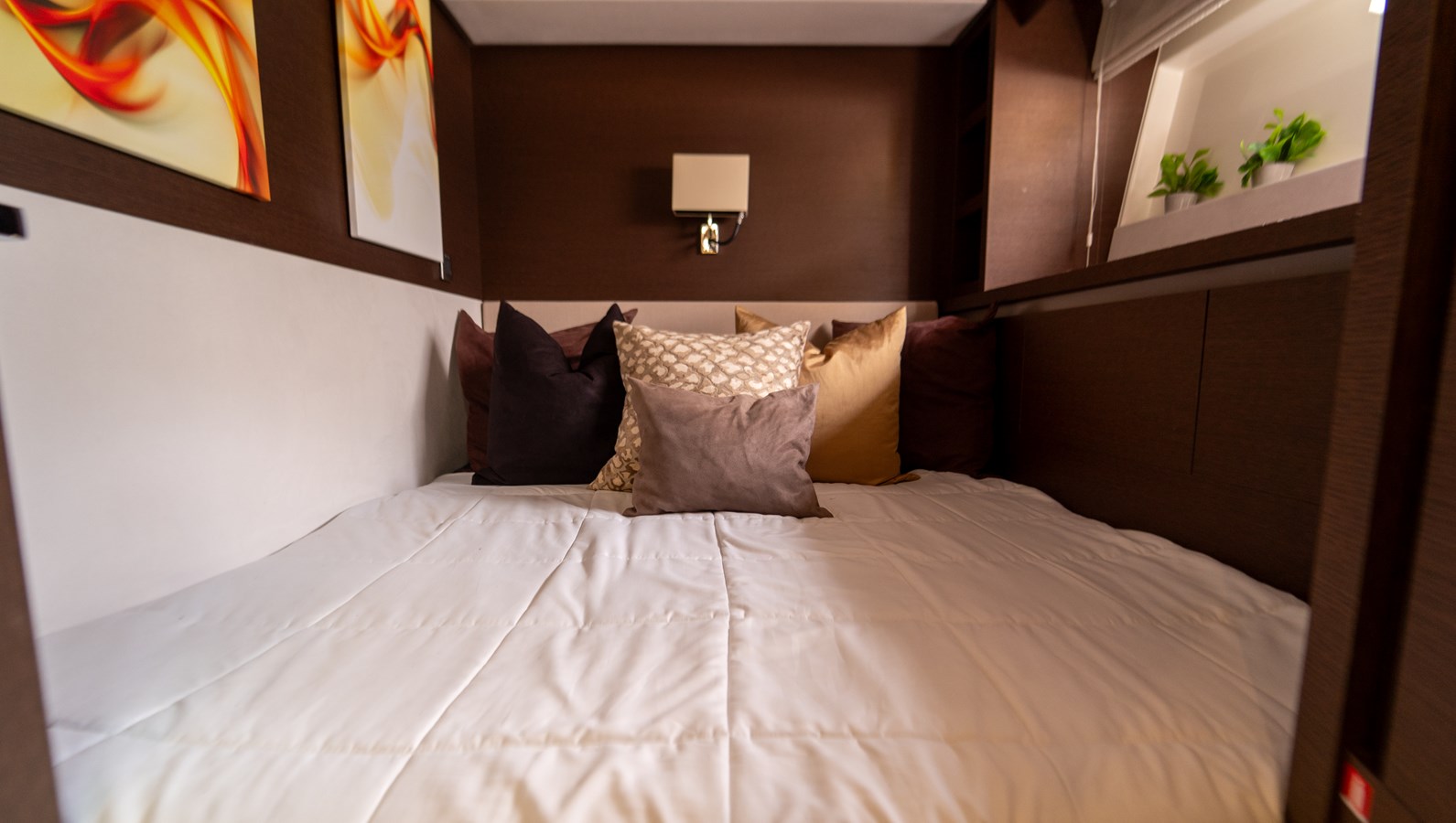 Accommodating up to eight guests in four beautifully appointed staterooms, YACHTOOMA features a full-beam master suite with private access and panoramic views, two VIP cabins and a twin cabin. Separate crew quarters aft ensure privacy and convenience, while advanced navigation electronics deliver confident handling whether cruising at high speeds or enjoying tranquil anchorages.