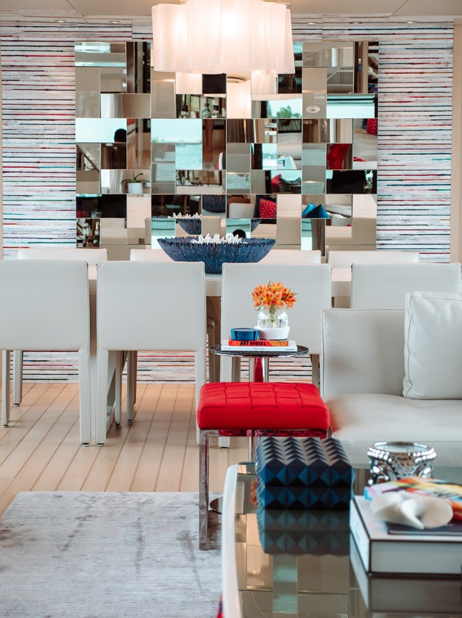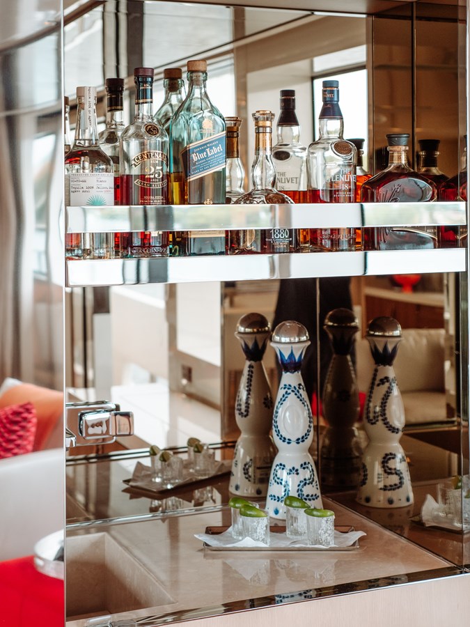 FIFTY SHADES is now available and can be considered the nicest and most well equipped Sanlorenzo SL106 available. The current owner recently spent over $500,000 in 2022 taking an already well conditioned yacht and making it exceptional. The owner hired Cullen Moser, an interior designer whom helped design their previous yacht, and they replaced every single upholstery and fabric throughout creating a theme of color and vibrance that is not seen on any other SL106. Custom artwork was commissioned that carries this theme through each of the interior spaces. A master on deck and four addition guest staterooms each with ensuite head makes Fifty Shades a great option for large families or for charter purposes. A garage aft that stores a 2020 Williams jet tender plus jet ski as well as various toys for water sports and a hydraulic swim platform for easy entry to the sea.