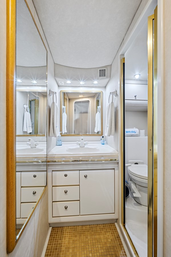 A striking blend of performance and luxury, Waterbaby is a beautifully maintained 1996 Sea Ray Super Sun Sport 63’. Powered by twin 1,250 hp Caterpillar diesel engines, she offers both speed and reliability for extended cruising.