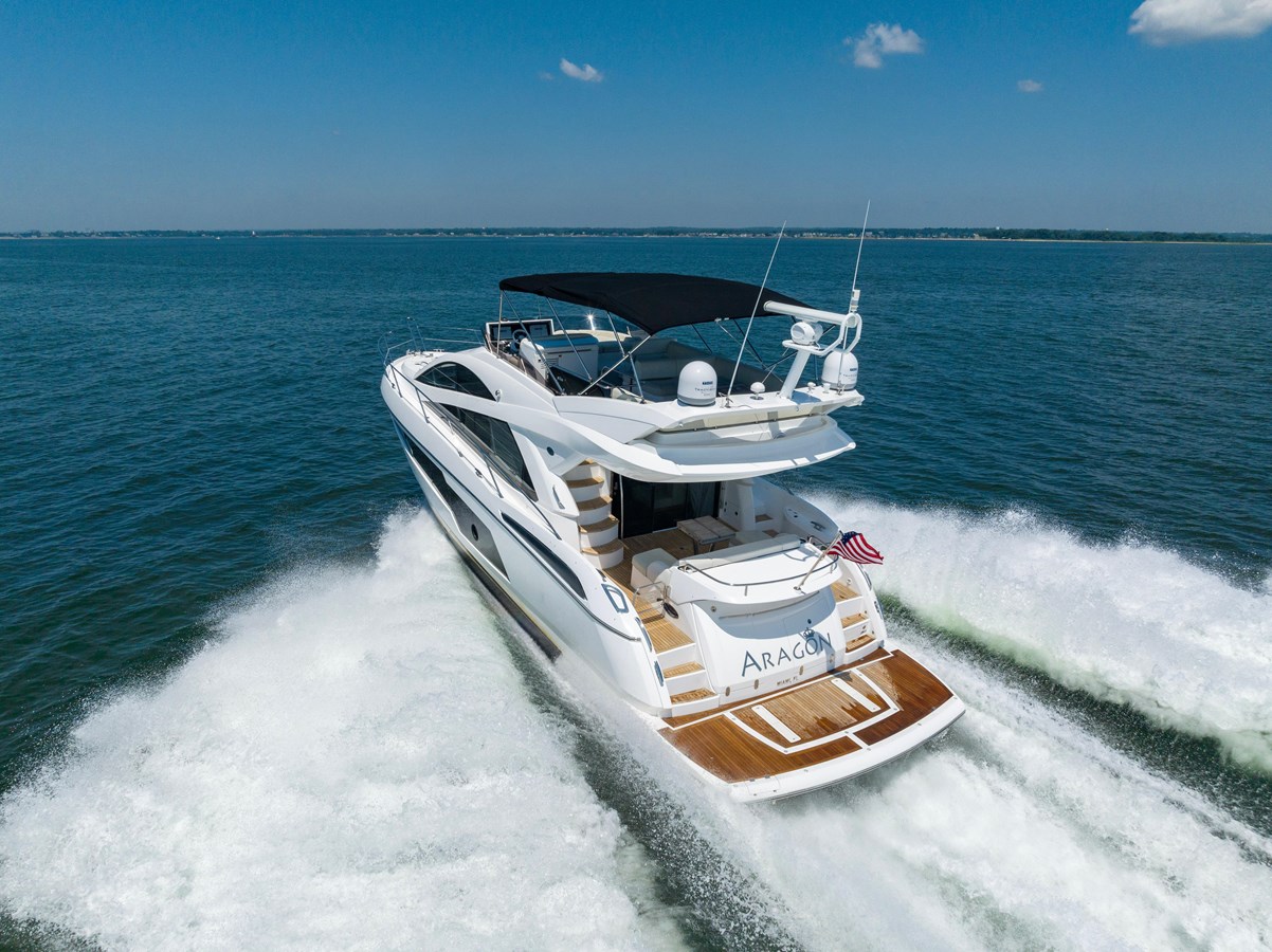 ARAGON is a stunning 60' yacht, with fin stabilization. Captain maintained and operated, Aragon shows magnificently with only 585 hours.