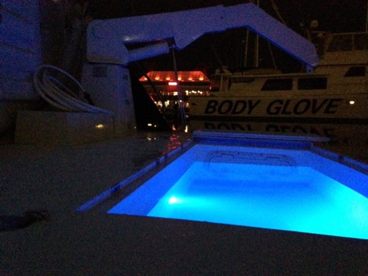 Aft swim step Jacuzzi platform can still be used very functional and cool at water level for guest to enjoy.