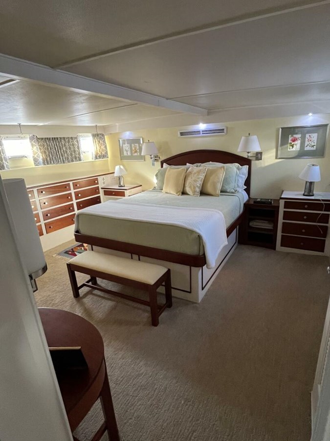 2024: Fresh varnish inside and out in January & February, in March air conditioning was fully serviced. Mid July through September 2024: hauled out for full shipyard period with the bottom thoroughly cleaned and freshly painted, the “worm shoe” replaced, caulking replaced, propellers fully serviced plus installation of an Arid Bilge System. DOVETAIL has received an additional 2 coats of varnish on the interior and exterior. Engine hours as of early July 2024 approximately 2200 hours on both the port and starboard engines. Generator hours on the twin Northern Lights 25 KW generators: 3800 hours on the port generator and 1700 hours on the starboard generator.