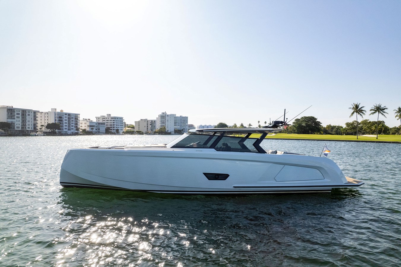 Vanquish sits firmly at the top of the luxury open yacht segment, with its beautifully balanced designs and uncompromising Dutch Superyacht quality. The VQ58’s aluminum hull plows through waves with ease, while guests enjoy comfortable seating arrangements and elevated entertainment solutions. IPS drives allow great maneuverability and shallow draft, a Seakeeper stabilizer further ensures comfort, and a massive powder coated tender garage houses a custom made Vanquish VQ11 Tender and two branded inflatable paddleboards. This Vanquish has custom Ferrari pearl white paint, beige exterior upholstery, carbon fiber awning system, and virtually every factory option. The sellers are upgrading, a new owner will inherit an absolutely flawless example of one of the world’s most exclusive and proven yachts.