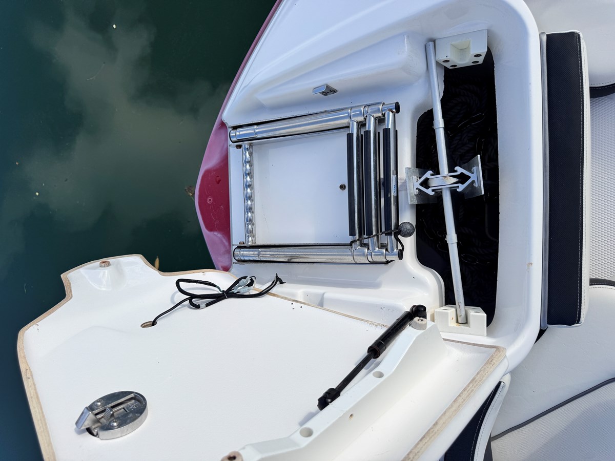 Powered by twin Yamaha jet engines with 225 hours, this boat delivers smooth handling, quick acceleration, and the safety of jet propulsion (no exposed propellers – great for families and watersports).